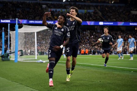 Il Madrid passa anche a Etihad con doppietta di Vinicius