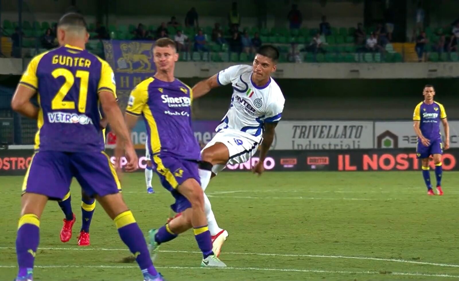 Meglio di così, Joaquin Correa, non poteva presentarsi ai tifosi dell’Inter. L’ex Lazio impiega appena quindici minuti per firmare la prima doppietta in nerazzurro e regalare i tre punti all’Inter del suo mentore Simone Inzaghi. Esordio da sogno per Correa che permette ai nerazzurri di battere 3-1 un Verona tignoso e mai domo. Un errore di Handanovic mette in salita la gara degli ospiti in avvio, ma è Lautaro a rispondere allo scavetto di Ilic. Poi il sigillo dell’argentino che si regala addirittura una doppietta allo scadere per il 3-1 finale. Parte meglio l’Inter ma a passare è il Verona. Erroraccio di Handanovic, palla regalata a Ilic, che dal limite firma l’1-0. Inter sotto tono, pronta però a risvegliarsi nella ripresa. E trova subito il pari con Lautaro Martinez che di testa infila Montipò da due passi. La partita si apre, adesso meglio l’Inter. Inzaghi richiama Lautaro ed inserisce Correa e proprio il suo pupillo gli regala i tre punti. Prima Darmian mette un cross dentro per la testa del Tucu che manda avanti l’Inyter a sette dalla fine. Ma non è finita, perché Correa ad una manciata di secondi dalla fine, trova anche la doppietta personale. Vince l’Inter. Meritatamente.