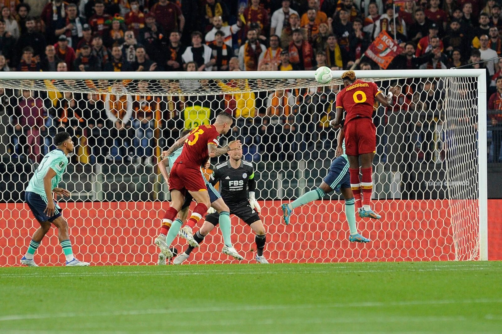 Fuori Barnes e Lookman nel Leiceste, dentro Amartey e Ineanacho. Ma subito Roma pericolosa. Ancora angolo di Pellegrini, cade Evans contrastato da Mancini, palla tra le braccia del portiere. Le telecamere inquadrano Claudio Ranieri e l’Olimpico si ferma, tutti in piedi e standing ovation per il tecnico testaccino. Il Liecester adesso aumenta i giri del motore, ma la Roma in controgioco ha la palla buona: lancio di Zaniolo per Abraham, con palla che tocca terra e finisce sul braccio dell’inglese. La Roma dietro è irreprensibile e concede nulla. Terzo cambio nel Leicester: fuori Pereira, dentro Castagne. Nella Roma fuori Zaniolo che ha speso moltissimo, dentro Veretout a dodici dalla fine. Poi tocca a Viña prendere il posto di Zalewski a sette più recupero dalla fine. Alza la voce l’Olimpico per accompagnare la Roma verso Tirana. Una bolgia mai vista, il cronometro scandisce gli ulitmi spiccioli di gara che vale tantissimo. Fuori Abraham, standing ovation per liui, dentro Shomurodov al tramonto del match. Cinque di recupero. Il Leicester ci prova con la forza della disperazione, ma è tardi. Dietro la Roma non mostra incrinature. E la Roma va a vincere, di misura, ma meritatamente. Ha dominato la partita, ha avuto sempre in manonil pallino del gioco, lasciando le briciole agli inglesi. E la Roma, si regala Tirana. In finale, il 25 maggio, c’è il Feyenoord che ha eliminato il Marsiglia. All’Olimpico è delirio, per una notte che più magica non si poteva.