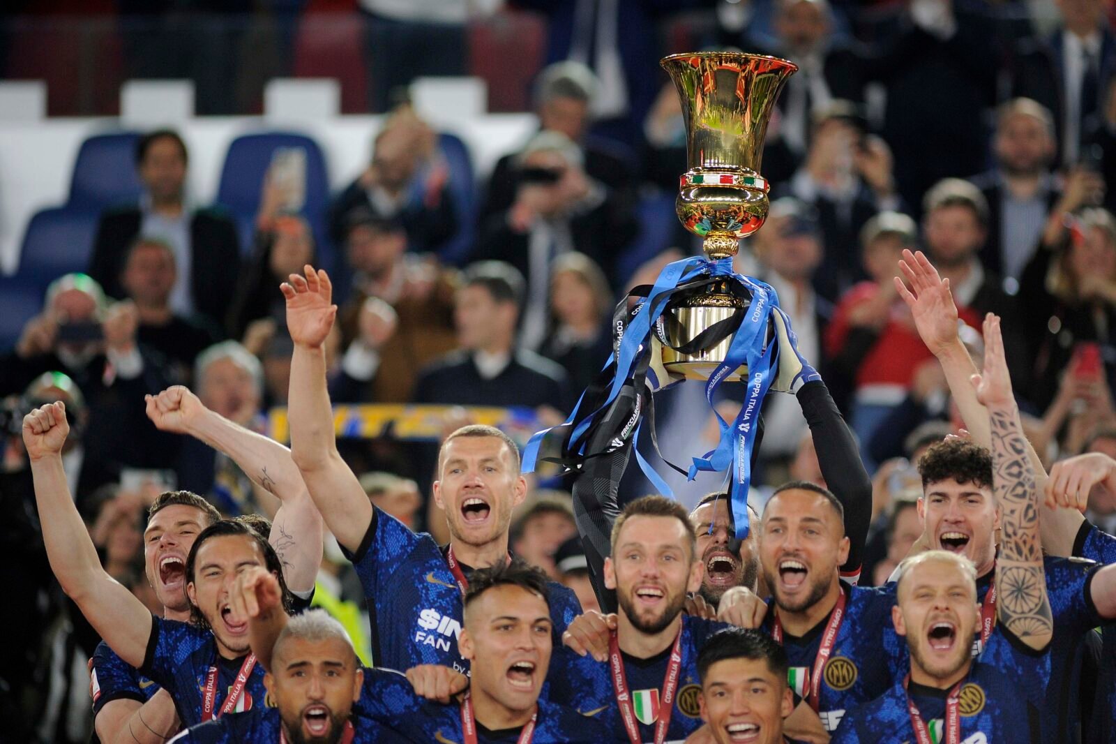 Fuori Alex Sandro, dentro Luca Pellegrini. L’Inter riprende il comando della gara, ancora su calcio di rigore. Stavolta punito il contatto tra De Ligt e De Vrij. Valeri fa proseguire ma viene richiamato dal Var e dopo la visione al monitor dice che è calcio di rigore. Trasforma Perisic: 3-2. Dentro Kean per Dybala nella Juve. Stavolta a chiuderla è l’Inter nel giro di tre minuti. Ancora Perisic che riceve palla all’interno dell’area, controllo di destro per calciare di sinistro, palla violenza che schizza all’incrocio dei pali: 4-2 Inter e nervosismo in campo. Secondo supplementare senza altre emozioni. Il grosso è stato già dato. Fuori Dimarco per Bastoni. E più nulla fino alla fine. Vince l’Inter, secondo trofeo stagionale per Simone Inzaghi dopo la Supercoppa del 12 gennaio. Trionfo personale per Ivan Perisic, miglior giocatore della finale di Roma.