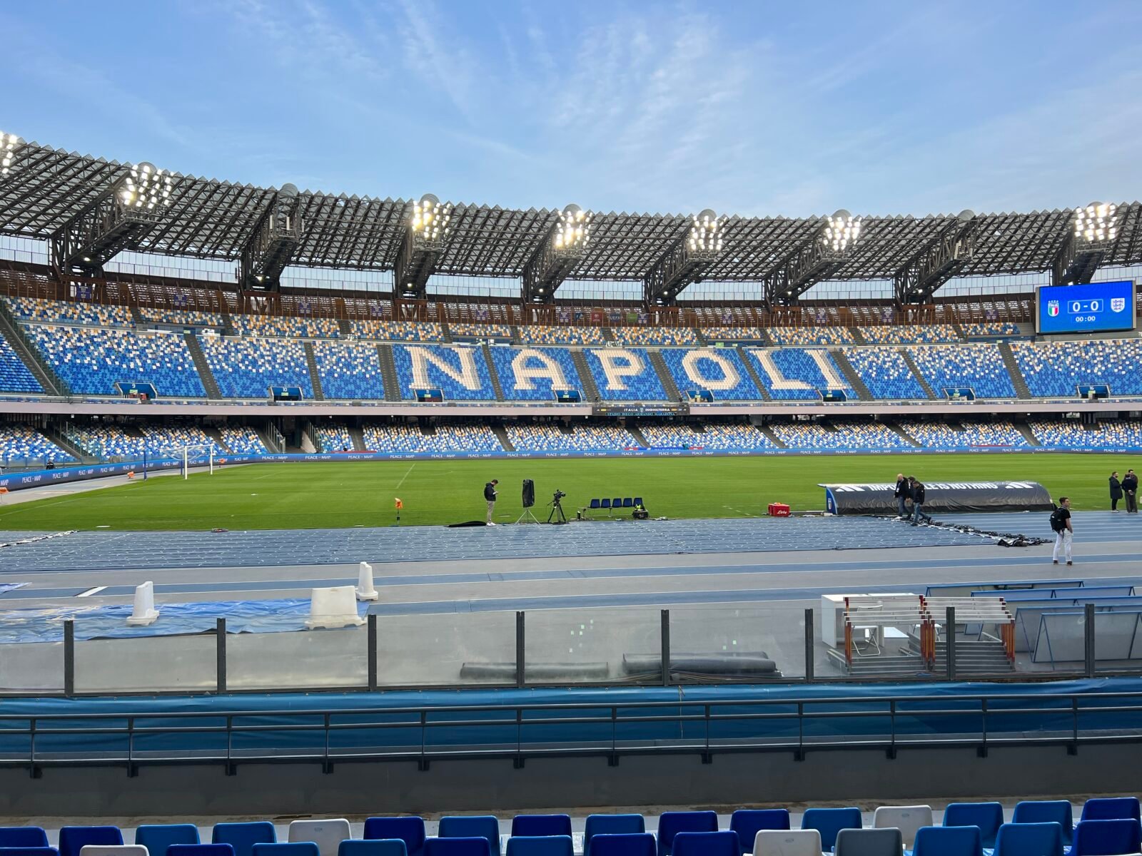 Sarà un avvicinamento alla gara con un’atmosfera coinvolgente. La Figc infatti presenterà al Maradona il nuovo led carpet con contenuti multimediali, con proiezioni laser sul campo  che scorreranno sul maxischermo accompagnati dalla note uniche e originali del brand theme delle nazionali, “Azzurri” composto dal maestro Enrico Giaretta e Maurizio D’aniello. Il tutto tra le 20.30 e le 20.38. Sarà poi la volta degli inni nazionali. Quello italiano sarà cantato da Gigi D’Alessio con la partecipazione di Clementino, mentre quello inglese “God save the King”, da Ellynora.