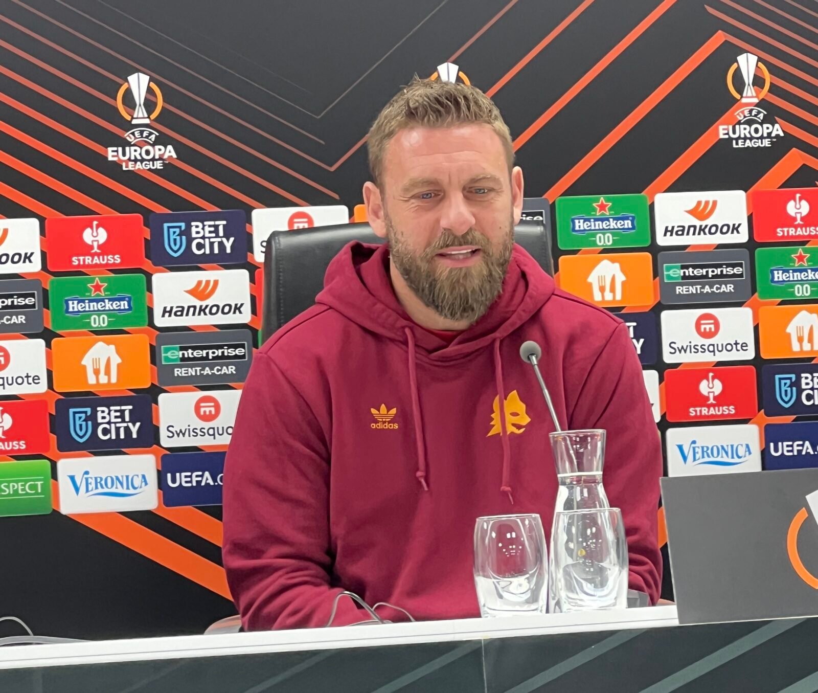 Domani l’andata e ritorno tra sette giorni all’Olimpico. Per De Rossi non fa differenza. “Senza il gol in trasferta la differenza si è assottigliata, ma poi è come il calendario. Devi giocare ovunque, sia in casa che in trasferta. Devi solo preparare la partita sapendo che ce ne sono due”.