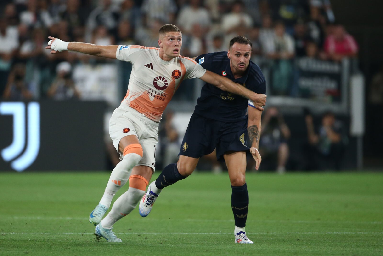 Neppure un guizzo Tanto tatticismo e partita bloccata da subito tra Juve e Roma. Motta conferma la fiducia in Savona e Mbangula, De Rossi sorprende lasciando in panchina Dybala (gioca Soulé) e Paredes (dentro il baby Pisilli), esordio per l’ex Milan Saelemaekers. L’avaria è uno dei sette peccati capitali, che in campo si tramuta in zero occasioni e poco spettacolo. La sfida si gioca in mezzo e Juve e Roma si equivalgono, con la Roma che parte meglio e prova subito a spaventare i bianconeri facendo partire l’azione dal basso. La Juve cresce alla distanza, ma occasioni non ce ne sono. Solo nel finale ci prova Vlahovic con una palla sporcata che trova però pronto e reattivo Svilar.