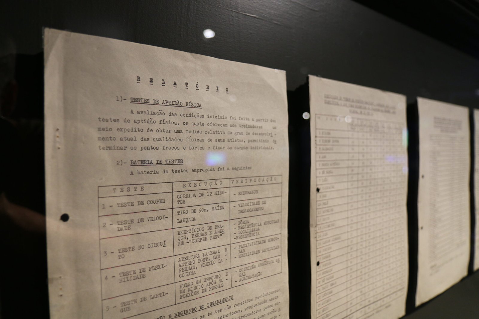 Uno dei pezzi più importanti della mostra è una serie di documenti del 1970 recuperati e analizzati. Si tratta dei risultati dei test di idoneità fisica a cui i giocatori della nazionale brasiliana sono stati sottoposti mesi prima della Coppa del Mondo, che si è tenuta in Messico proprio in quell’anno. Tra i dati raccolti figurano i risultati del famoso test di Cooper, che misura per esempio la distanza che gli atleti possono percorrere in 12 minuti. I visitatori rimarranno sorpresi nel vedere la valutazione del leggendario Pelé che, nel test, ha ottenuto un semplice “buono”. Tuttavia, va ricordato che la stella brasiliana, a quasi 30 anni, stava già affrontando la sua quarta Coppa del Mondo FIFA consecutiva.