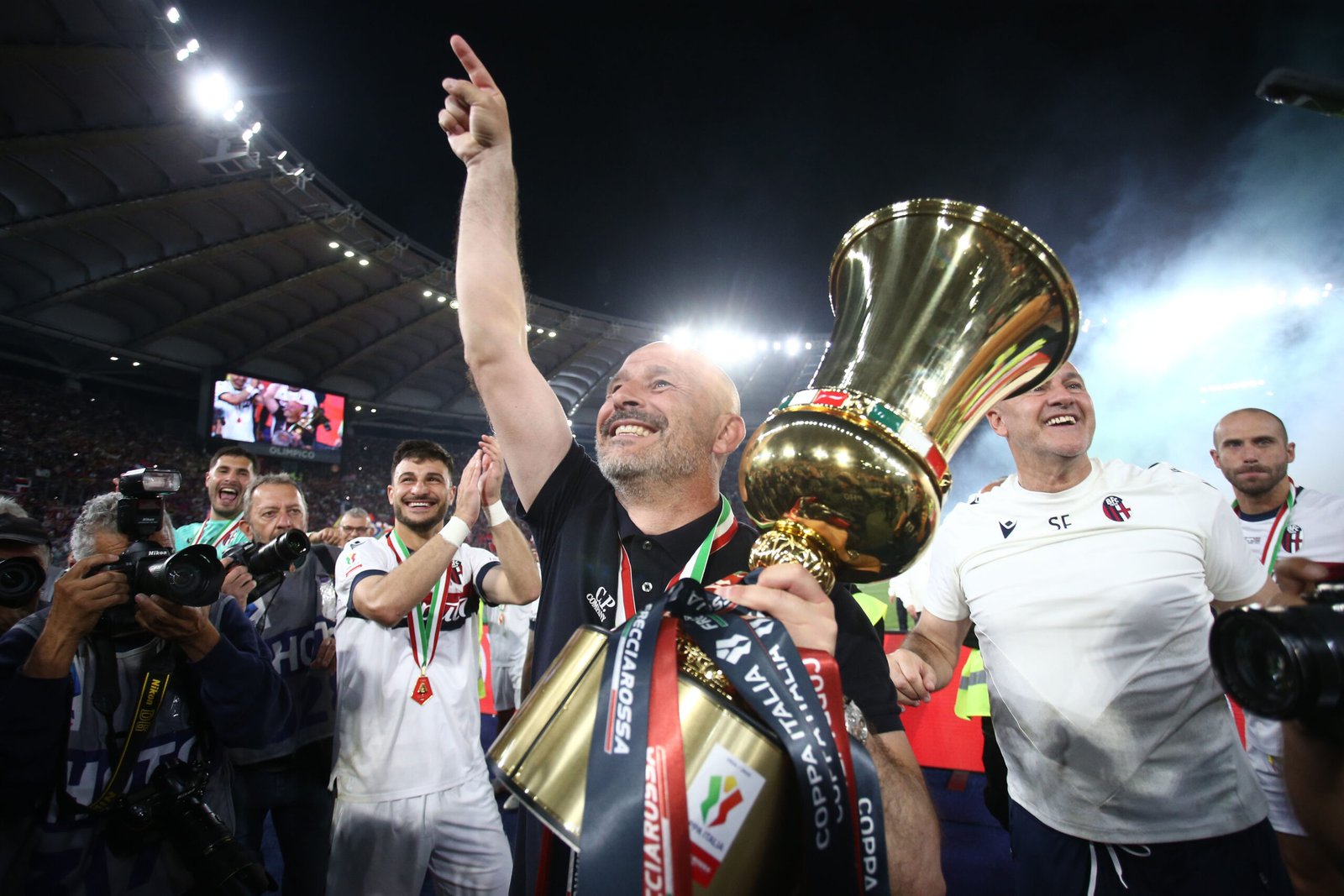 La Coppa Italia Frecciarossa continua il suo progresso nel cuore dei tifosi anche grazie a Bologna e Milan, che si sono date battaglia senza esclusione di colpi. All’avvio arrembante rossonero ha risposto un’organizzazione di gioco rossoblù tutta impostata sulla pressione costante degli avversari. Quello del Diavolo si è rivelato un fuoco di paglia, mentre sotto la cenere vecchia di 51 anni covava la fiamma del successo, riesplosa quando il guizzo di Ndoye in area ha bucato a inizio ripresa la guardia di Maignan, proprio sotto gli occhi dei trentamila sostenitori sognanti. L’ultimo capitano del Bologna ad alzare la Coppa Italia (in quello stesso cielo di Roma) fu Giacomo Bulgarelli. Il che dice molto su quanto sia storica questa vittoria, con il trofeo ritirato da un raggiante Lorenzo De Silvestri e poi condiviso con mezzo Olimpico festante.